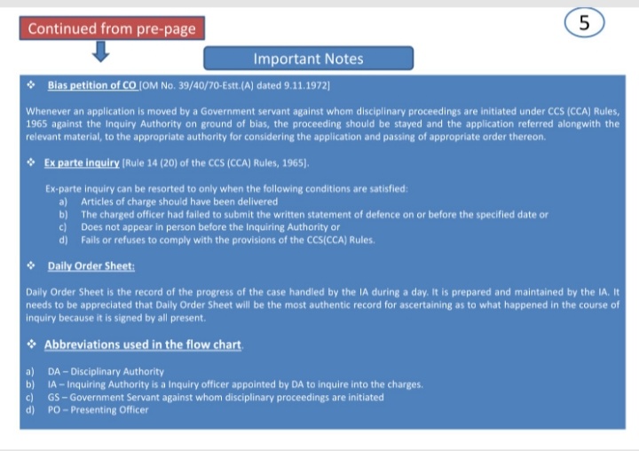 Aid to processing of departmental proceedings under the CCS (CCA) Rules, 1965 - Simplification regarding.